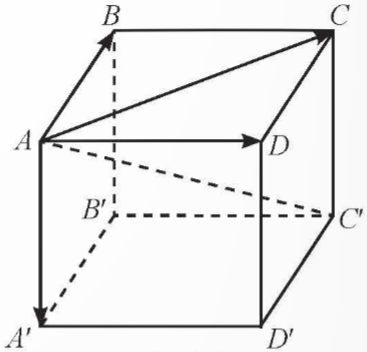 \(\overrightarrow{AB};\ \overrightarrow{AD};\ \overrightarrow{AA'}\) của hình lập phương ABCD.A'B'C'D'.
