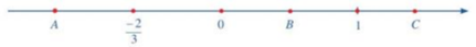 b) Trong ba điểm A, B, C trên trục số dưới đây có một điểm biểu diễn số hữu tỉ 0,5. Hãy xác định điểm đó.