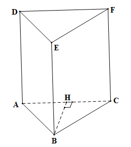 Ta biểu diễn thùng xe thành hình lăng trụ đứng tam giác như hình vẽ trên với hai đáy là ABC và DEF chiều cao của đáy là BH = 50 cm, độ dài cạnh bên là BE = 60 cm, cạnh đáy AC = 80 cm.
