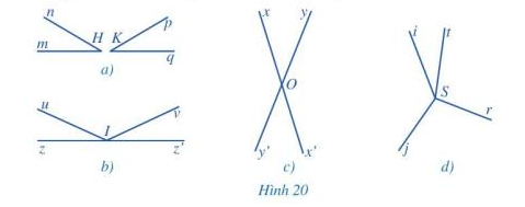 Trong Hình 20d: Không có vì không có 2 góc nào mà mỗi cạnh của góc này là tia đối của một cạnh của góc kia.