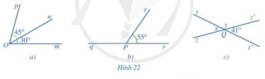 c) Ta có: \widehat {tQz} = \widehat {t\(\widehat {tQz} = \widehat {t'Qz'}\) ( 2 góc đối đỉnh), mà \widehat {t\(\widehat {t'Qz'} = 41^\circ \Rightarrow \widehat {tQz} = 41^\circ\)
