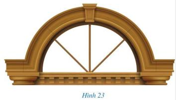 Hình 23 là một mẫu cửa có vòm tròn của một ngôi nhà. Nếu coi mỗi thanh chắn vòm cửa đó như một cạnh của góc thì các thanh chắn đó tạo ra các góc kề nhau. Theo em, mỗi góc tạo bởi hai thanh chắn vòm cửa đó khoảng bao nhiêu độ?