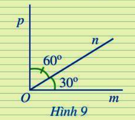 Ở Hình 9, hai góc mOn và pOn có là hai góc kề nhau hay không? Tính số đo của góc mOp.