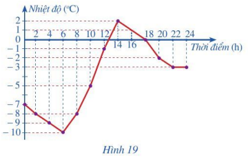 Biểu đồ đoạn thẳng trong Hình 19 biểu diễn nhiệt độ trong một ngày mùa đông tại một địa điểm ở miền ôn đới.