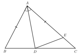 Cho tam giác ABC có AB < AC. Tia phân giác của góc BAC cắt cạnh BC tại điểm D. Điểm E thuộc cạnh AC thoả mãn AE = AB. Chứng minh: