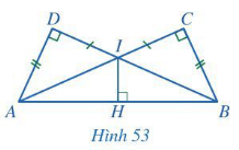 Cho Hình 53 có AD = BC, IC = ID, các góc tại đỉnh C, D, H là góc vuông.