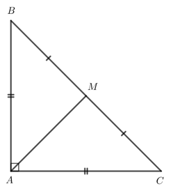 Cho tam giác ABC vuông cân tại A. Gọi M là trung điểm của cạnh huyền BC. Chứng minh tam giác MAB vuông cân.