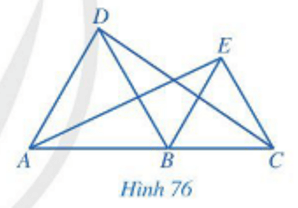 Trong Hình 76, cho biết các tam giác ABD và BCE là các tam giác đều và A, B, C thẳng hàng. Chứng minh rằng: