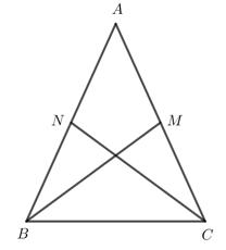 Cho tam giác ABC cân tại A có M là trung điểm của cạnh AC và N là trung điểm của cạnh AB. Chứng minh BM = CN.
