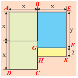Biểu thức biểu thị diện tích hình chữ nhật GHKF là: 2x (m2).
