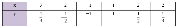 b) Lập bảng các giá trị tương ứng của y khi x lần lượt nhận các giá trị: −3; −2; −1; 0; 1; 2; 3.