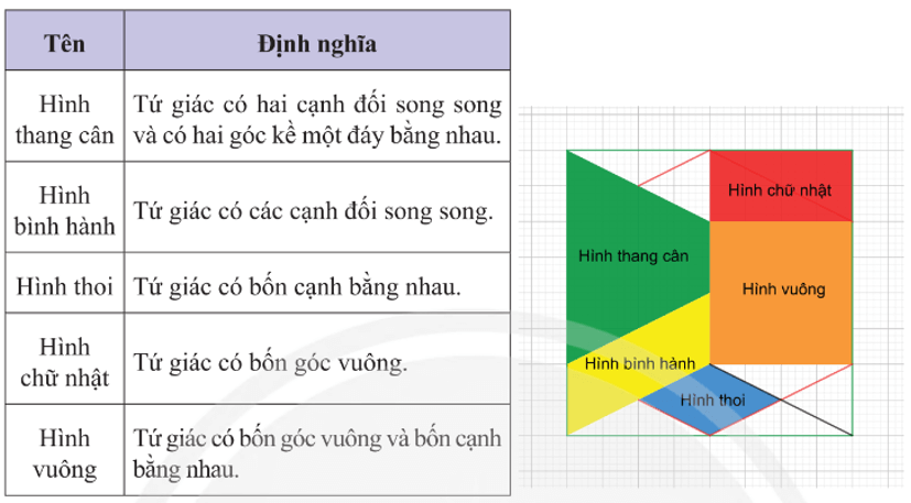 4. Ghi chú tên và định nghĩa mỗi loại tứ giác trên mép tờ giấy.