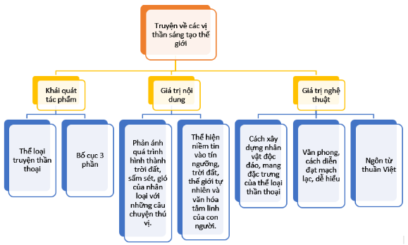 Văn bản “Truyện về các vị thần sáng tạo thế giới” đã lý giải về sự hình thành của thế giới tự nhiên thông qua các vị thần. Mỗi vị thần có một quyền năng đặc biệt, đảm bảo sự sống cho trái đất. Truyện về các vị thần đã phản ánh quan niệm nhận thức của con người thời cổ về thế giới xung quanh và thể hiện khao khát chinh phục tự nhiên.