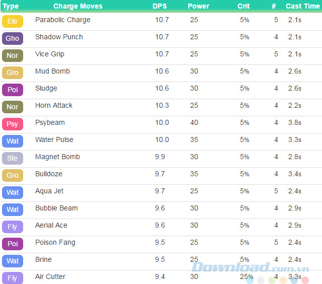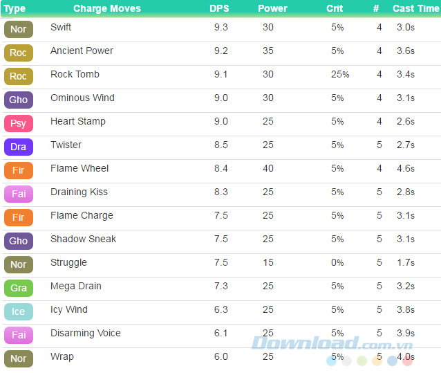 Trên đây là toàn bộ kỹ năng đặc biệt (từ tên gọi, hệ Pokemon có thể sử dụng, cho tới sức mạnh và tỷ lệ thành công...) của các Pokemon đang có trong phiên bản Pokemon Go hiện tại. Những số liệu này được lấy trực tiếp từ Niantic, nên các bạn có thể hoàn toàn yên tâm và tham khảo, sử dụng với những Pokemon mình đang có để có một chiến lược hợp lý khi thi đấu trong Gym.
