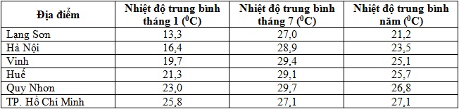 Nêu nhận xét về sự thay đổi nhiệt độ từ Bắc vào Nam và giải thích vì sao có sự thay đổi đó?