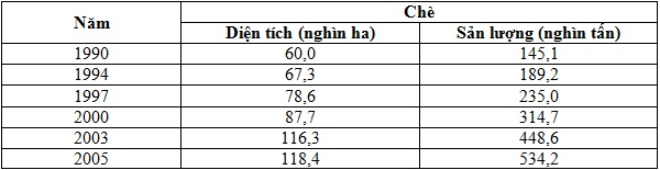 DIỆN TÍCH VÀ SẢN LƯỢNG CHÈ Ở NƯỚC TA GIAI ĐOẠN 1990-2005