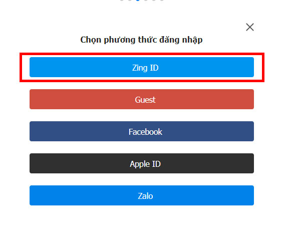 Đầu tiên các bạn truy cập vào trang code.360game.vn/vi/dt3q/giftcode/. Chọn một phương thức đăng nhập của tài khoản (Ví dụ Zing ID).