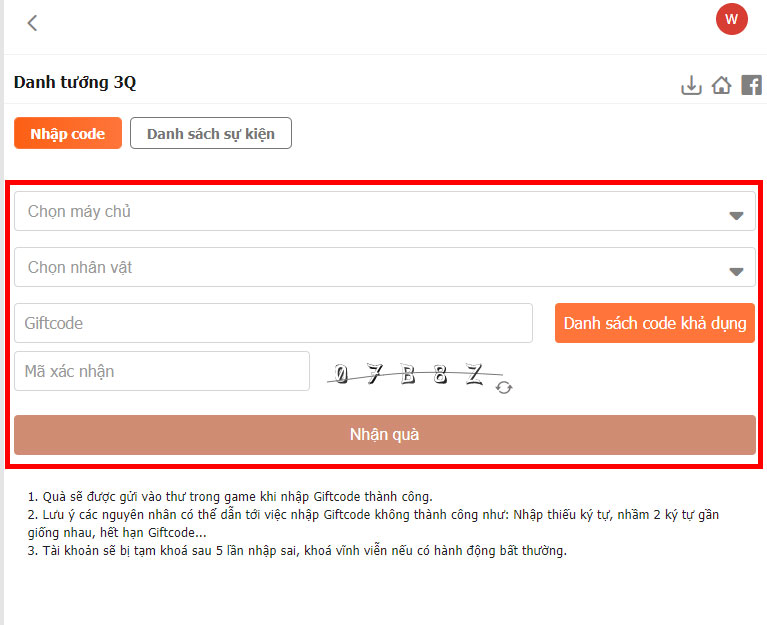 Nếu nhập mã thành công, phần thưởng sẽ được gửi về hòm thư trong game của bạn.