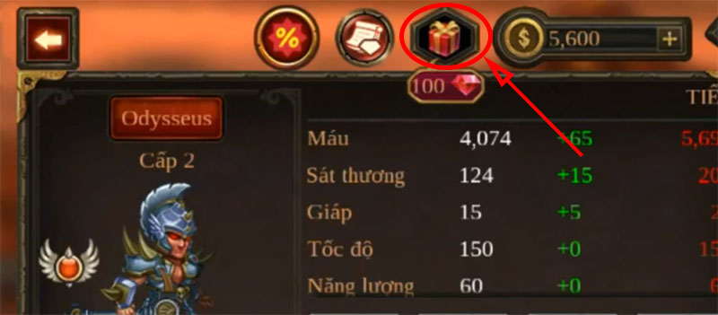 Để nhập code Epic Heroes War cũng rất đơn giản. Đầu tiên ở màn hình chính các bạn nhấn chọn biểu tượng hình hộp quà ở thanh menu bên trên màn hình.