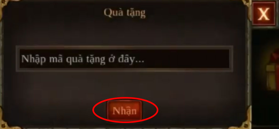 Cuối cùng, hãy nhập mã quà tặng vào ô trống sau đó nhấn nút Nhận.