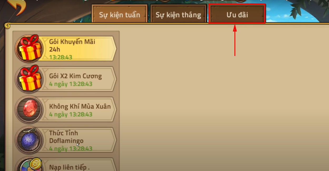Bước 2: Ở bảng hiện ra, nhấn chọn tab Ưu đãi.