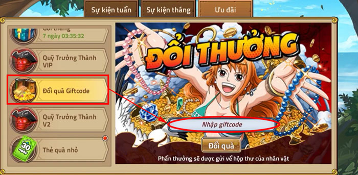 Bước 4: Nhập mã Giftcode vào ô Nhập giftcode rồi nhấn nút Đổi quà.