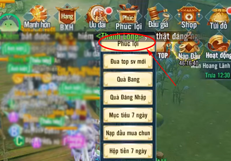 Để nhập giftcode trong game cũng rất đơn giản. Đầu tiên các bạn đăng nhập vào game. Ở màn hình chính, nhấn chọn Phúc Lợi ở menu bên trên màn hình sau đó chọn tiếp mục Phúc lợi.