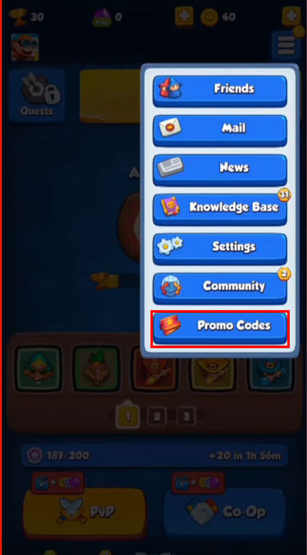 Ở menu hiện ra, nhấn chọn nút Promo Codes ở phía dưới cùng.