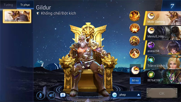 Gildur ông Vua hoàng kim với khả năng đỡ đòn vô cùng nổi bật, cùng đó khả năng khống chế cũng nổi bật không kém. Vị tướng Gildur sở hữu Quả đấm vàng và bàn tay vàng sẽ khiến cho đối thủ sợ sệt, chưa dừng ở đó nội tại Bàn tay vàng sẽ đòn đánh thứ 4 liên tiếp sẽ đẩy lùi và gây sát thương phép. Đồng thời, tất cả kĩ năng tung sẽ có hiệu ứng lá chắn tạm thời.