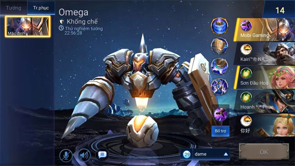 Cỗ máy tri giác có khả năng khống chế khá ấn tượng trong các cuộc giao tranh, Omega là 1 tướng đỡ đòn nhưng khả năng sát thương vật lý cũng vô cùng đáng gờm, chiêu Chế độ nghiền nát có thể gây choáng trên diện rộng khiến Omega trở nên khá nguy hiểm.