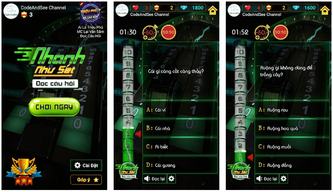 Để có thể dễ dàng cho người chơi trả lời, game này sẽ có bốn đáp án cho mọi người lựa chọn.