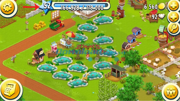 Ngoài ra, các công việc như hoàn thành đơn hàng trên bảng đơn hàng, ghé thăm trang trại của người chơi khác và nhìn vào cửa, nếu có một cái sọt với dấu chấm than trên đó, hãy nhấn để lấy điểm kinh nghiệm.