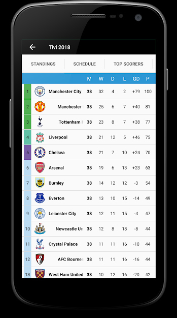 Tivi 2018: Football livescores cung cấp cho người dùng những thông tin nhanh nhất, chính xác và được nhiều người quan tâm nhất về môn thể thao vua. Bao gồm thông tin về các giải đấu chính, như: Premier League, Bundesliga, Serie A, Champions League, English FA Cup...