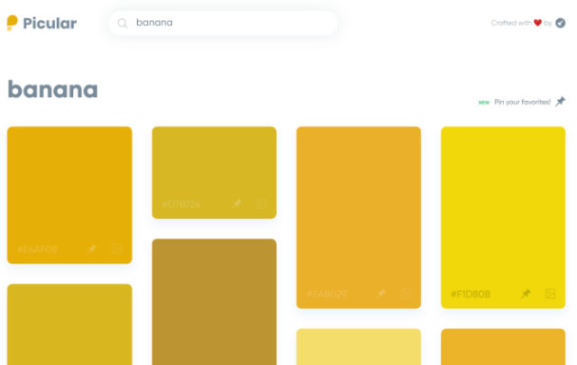 Giả sử bạn đang tìm kiếm màu của quả chuối ngoài đời thực, hãy gõ “chuối”. Picular sẽ trả lại kết quả là một loạt màu sắc của quả chuối. Hãy thử tìm màu sắc của những thứ trừu tượng như Tiếng cười, hay Tình yêu là gì?