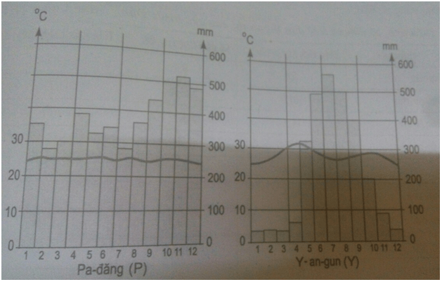 B. Nhiệt độ và lượng mưa tại Pa-đăng và Y-an-gun.