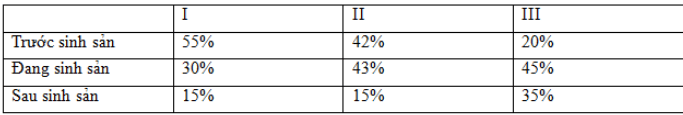 Một quần thể với cấu trúc 3 nhóm tuổi: trước sinh sản, đang sinh sản và sau sinh