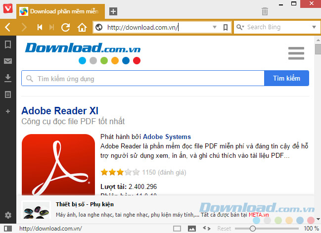 Công cụ tìm kiếm ban đầu của Vivaldi là Bing, tuy nhiên, cũng chỉ cần một cú click chuột, chúng ta sẽ dễ dàng thay đổi nó.