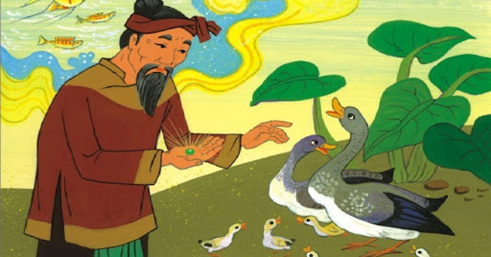 Thấy bạn có vẻ quả quyết, Trần Anh đành thả ngỗng ra, rồi giục vợ chạy đi mua tép về đãi bạn.