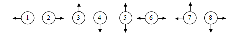 - M dòng tiếp theo mô tả qui luật truyền tin. Dòng thứ i trong số M dòng này chứa N số ai1, ai2, ..., aiN, trong đó giá trị của aij sẽ là 1, 2, 3, 4, 5, 6, 7, 8 tương ứng lần lượt nếu ô (i, j) phải truyền tin cho ô kề cạnh bên trái, bên phải, bên trên, bên dưới, bên trên và bên dưới, bên trái và bên phải, bên trên và bên trái, bên dưới và bên phải (xem hình vẽ); còn nếu ô (i, j) không phải truyền tín hiệu thì aij = 0.