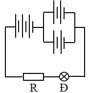 Bài 2 (2,5 điểm). Cho mạch điện như hình vẽ 3. Biết các nguồn điện giống nhau, mỗi nguồn có suất điện động E = 3 V, điện trở trong 1 Ω; điện trở R = 2 Ω và bóng đèn có ghi 9 V – 9 W.