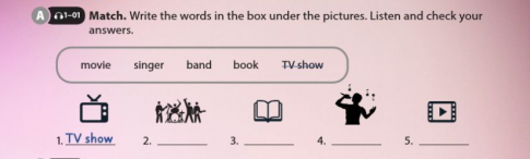 Write the words in the box under the picture. Listen and check your answers (Nối. Viết các từ trong hộp vào dưới bức tranh. Nghe và kiểm tra lại đáp án của bạn)