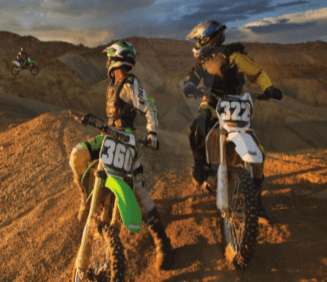 (Những chàng trai này thích tập thể thao vào cuối tuần. Sở thích của họ là đua mô tô. Họ đang luyện tập cho một cuộc đua)