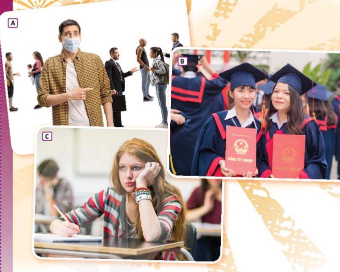 (Với mỗi bức ảnh, chọn tính từ (a-c) thích hợp với cảm xúc của mỗi người.)