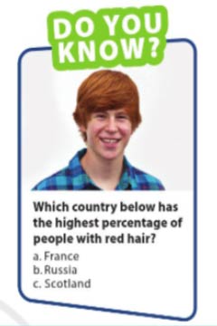 (Tạm dịch : Đất nước nào dưới đấy có số người tóc màu đỏ chiếm phần trăm cao nhất?