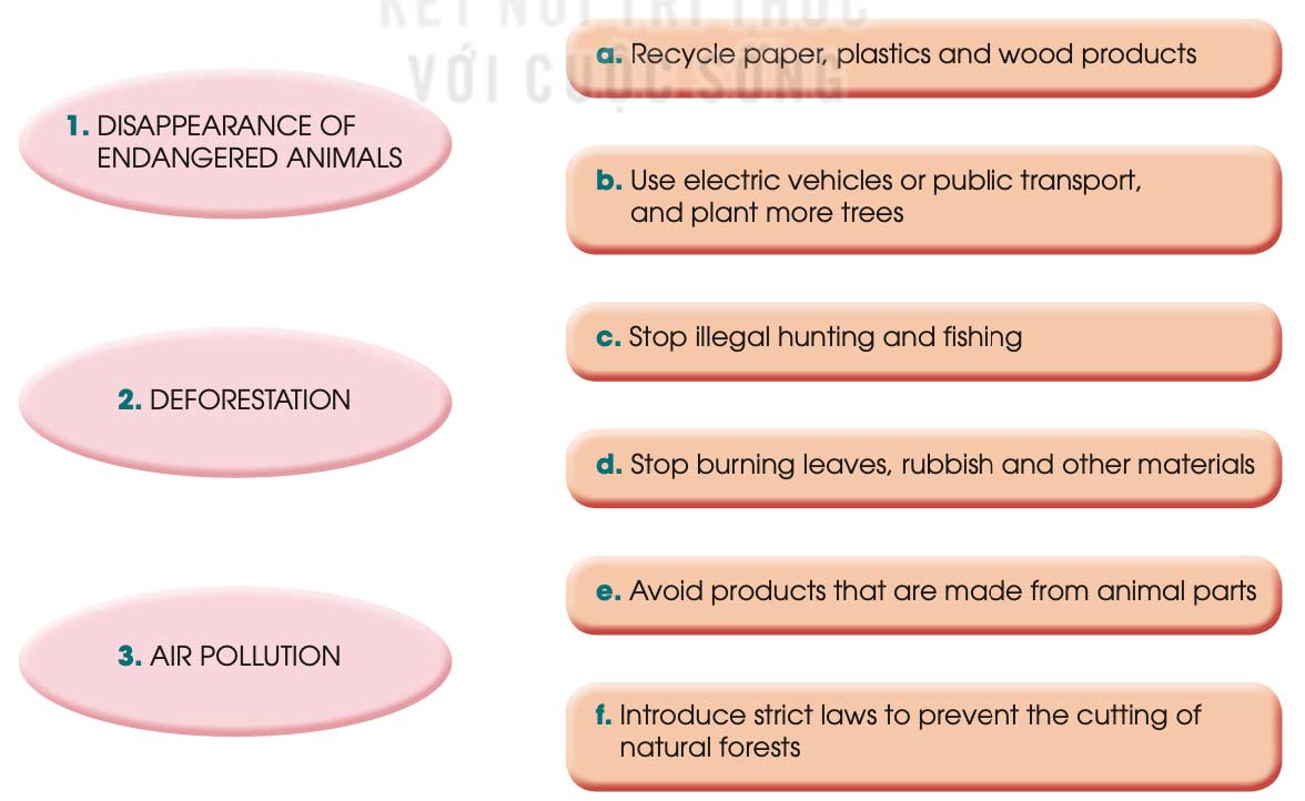 (Làm việc theo cặp. Nối các vấn đề về môi trường với các giải pháp được đề xuất.)