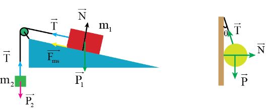 - Các lực tác dụng lên vật m: trọng lực \overrightarrow P\(\overrightarrow P\) , lực căng dây \overrightarrow T\(\overrightarrow T\) , phản lực \overrightarrow N\(\overrightarrow N\) .