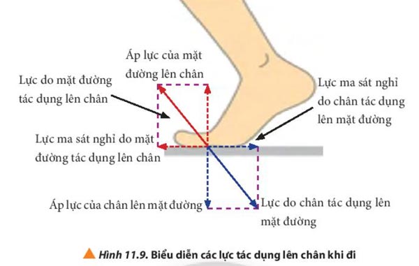- áp lực của mặt đường tác dụng lên chân, có điểm đặt tại chân, phương vuông góc, chiều từ dưới lên.