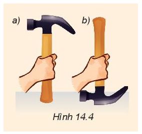 a) Đập mạnh cán búa xuống đất như Hình 14.4a.