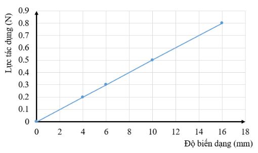 b) Vẽ đồ thị biểu diễn sự phụ thuộc của độ dãn lò xo theo lực tác dụng vào lò xo. Tính độ cứng của lò xo dùng trong thí nghiệm.
