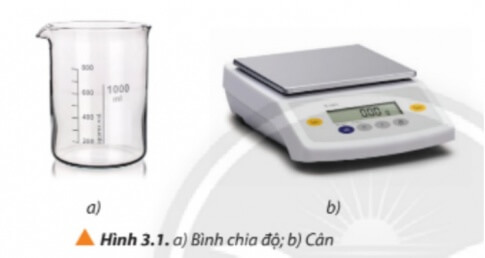 Với các dụng cụ là bình chia độ (ca đong) (Hình 3.1a) và cân (Hình 3.1b), đề xuất phương án đo khối lượng riêng của một quả cân trong phòng thí nghiệm.